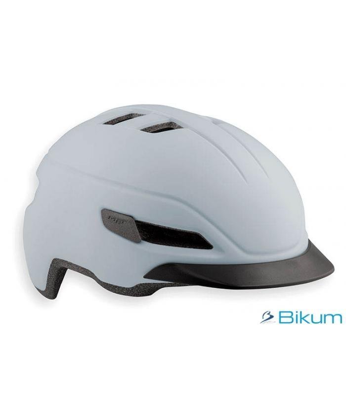 Casco MET, Modelo Corso - Calota de policarbonato In-mould con EPS - Mayor superficie de protección - Sistema de ajuste Safe-T E-Mid - Padding lavables a mano para mayor estabilidad - Correa de la barbilla acolchada - Divisores laterales ajustables antideslizamiento - Visera intercambiable y extraible - Visera rígida o blanda incluida - Elementos reflectantes en zonas laterales y trasera - Luz LED trasera integrada - Talla y Colores: M | 56/58 cm | 290 g BLANCO HIELO - Diseñado: Urbano | E-Bike | Uso diario
