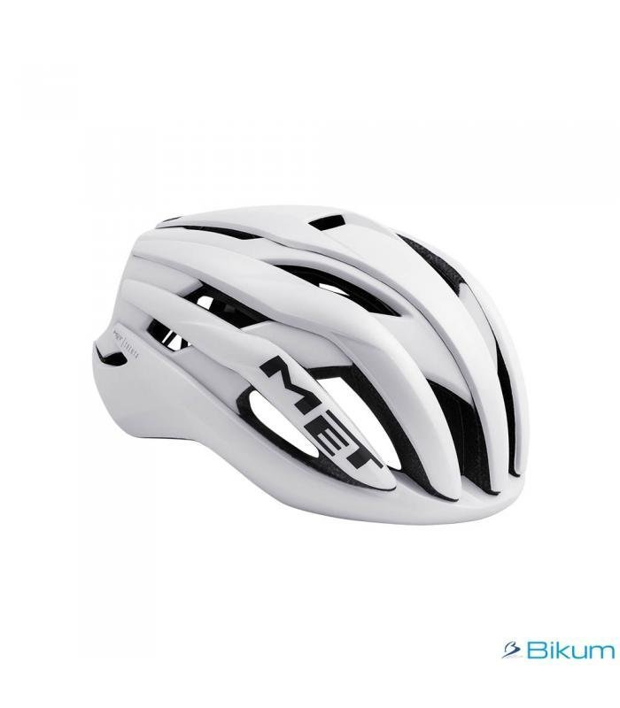 Casco MET, Modelo TRENTA - Calota de policarbonato In-mould con EPS - Sistema de ajuste Safe-T Orbital - Compatible con pelo largo - Padding de Air Mesh lavables a mano - Correas Air Lite - Divisores de correas laterales ajustables - Elementos reflectantes traseros - Talla, Peso y Color: L | 58/61 cm 230 gr BLANCO - Diseño: Carretera | Triatlón - Accesorios Diponibles: - Luz MET USB LED Light - Padding frontal MET DualGel